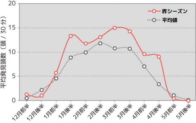 昨シーズンの観測結果を平均値と比較すると、