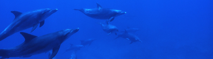 小笠原でドルフィンウォッチング・スイミングの主役となっているミナミハンドウイルカ。このイルカの生態研究と普及を目的に2003年6月に結成されたのがOWAイルカ調査隊です。主に水中で撮影したイルカの傷や特徴を基に個体を識別し、そのデータベース化を行っています。今までに200頭以上が識別されています。またミナミハンドウイルカが小笠原群島周辺に通年生息すること、群島間を行き来すること、その親子関係など、様々なことが少しずつ分かってきています。
