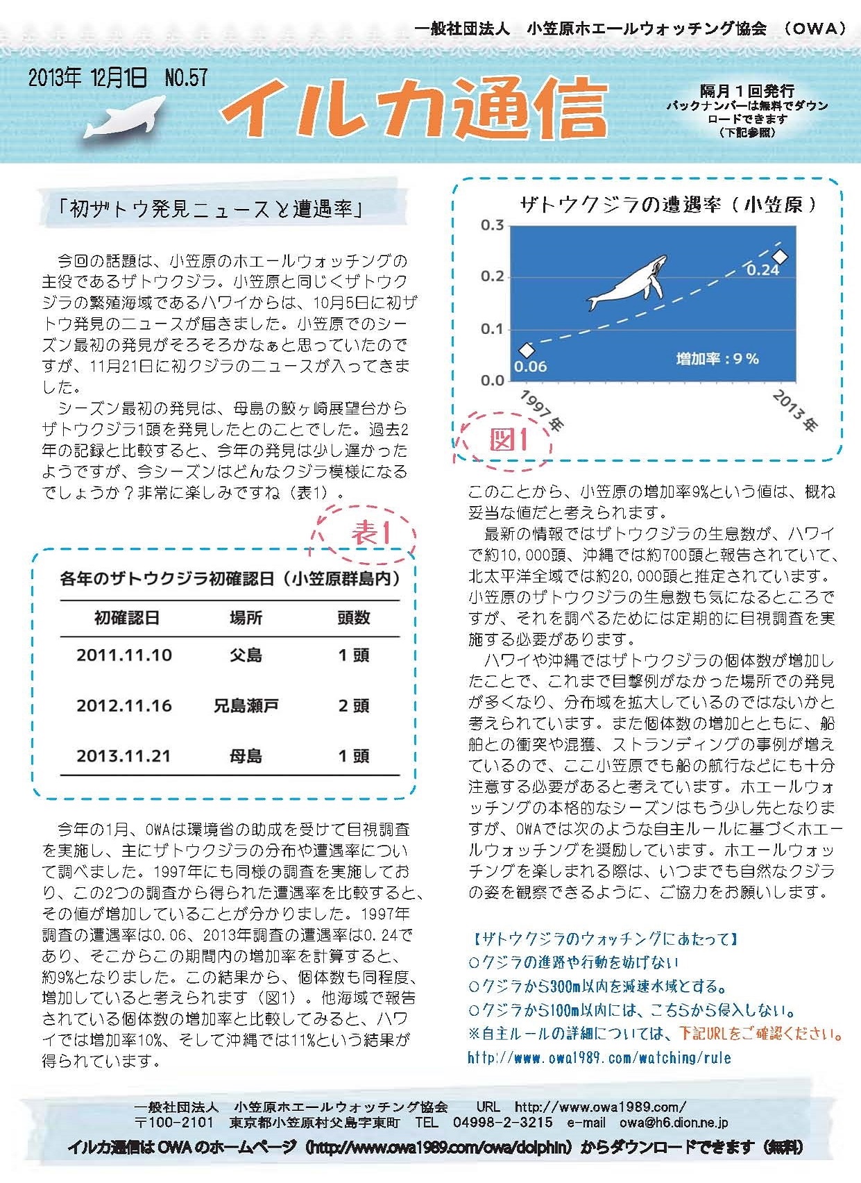 目次 「初ザトウ発見ニュースと遭遇率」 1月に実施した父島海域での鯨類一斉調査の結果から、 過去の調査との遭遇率の比較についてご報告です。