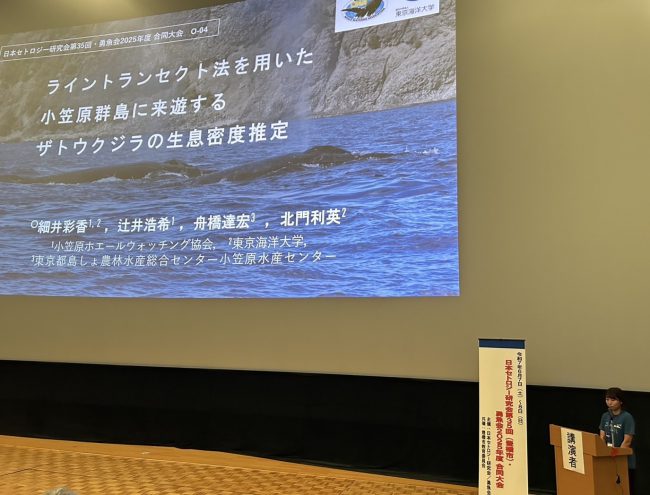 2025年6月7日(土)、8日(日)に愛知県豊橋市で行われた日本セトロジー研究会第35回(豊橋市) ・勇魚会2025年度合同大会で、研究員1名が口頭発表しました。