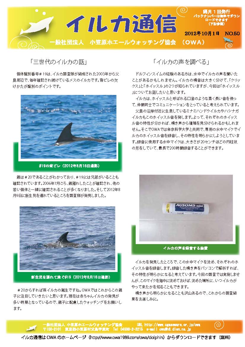 2012年10月発行のイルカ通信No.50を公開しました。