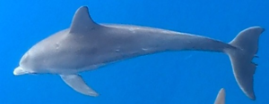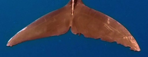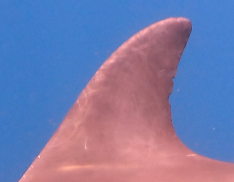 吻部(くちばし) 線傷(黒) 右胸ビレ欠損 尾ビレ欠損 背ビレ欠損