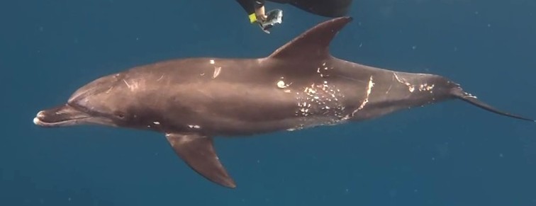 #297 パイ π よく出会う個体よく出会う個体30選確認海域父島列島特徴白斑 黒斑 右胸ビレ欠損 尾ビレ欠損 背ビレ欠損性別オス 2002年9月7日 最終更新日時 : 2025年12月23日 kanri 全身 背ビレ 尾ビレ 調査隊メモ 背ビレ手前にπ(パイ)の形の白斑がある。背ビレは少し欠けがある。 全個体一覧へ よく出会う個体