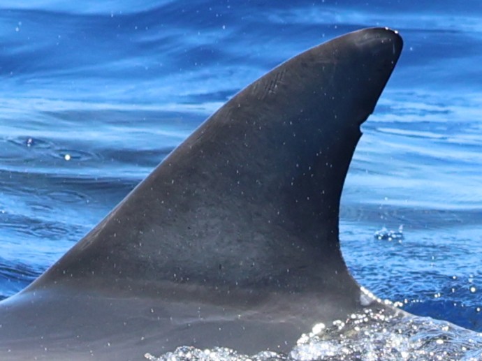 #385 ビヘイブ よく出会う個体よく出会う個体30選確認海域父島列島特徴胴体凹み 線傷(黒)性別オス 2003年8月5日 最終更新日時 : 2025年12月23日 kanri 全身 背ビレ 尾ビレ 調査隊メモ 母親は#19(スポッティー)。尾柄部(びへいぶ)が欠けているためビヘイブと名付けられた。 全個体一覧へ よく出会う個体